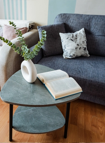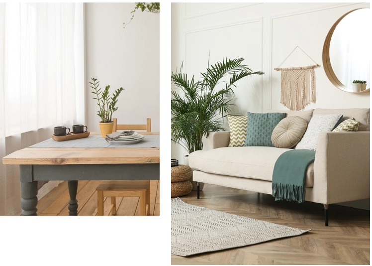 Plants introduce vitality and natural color contrast.